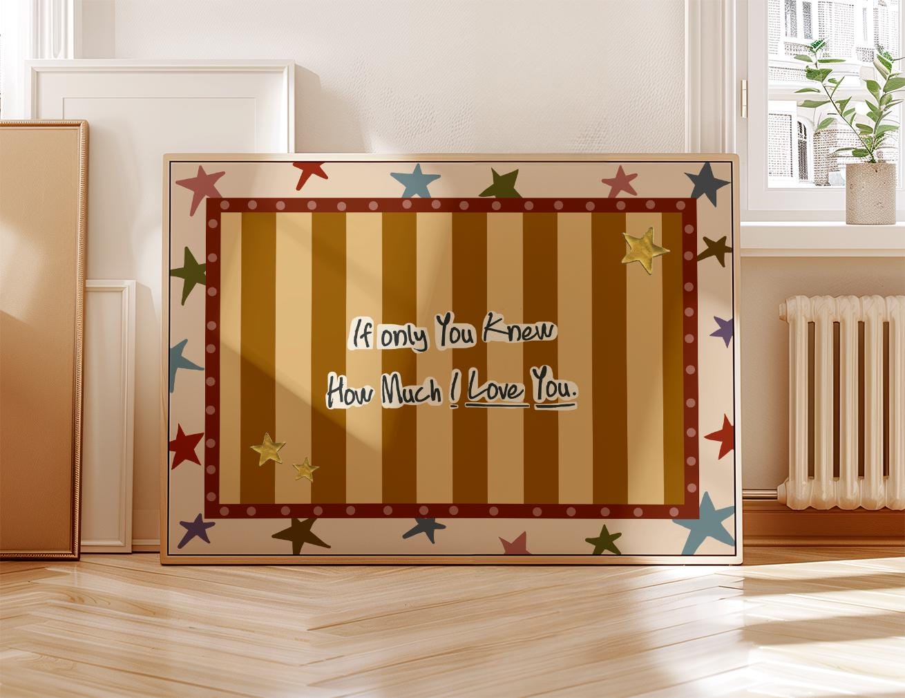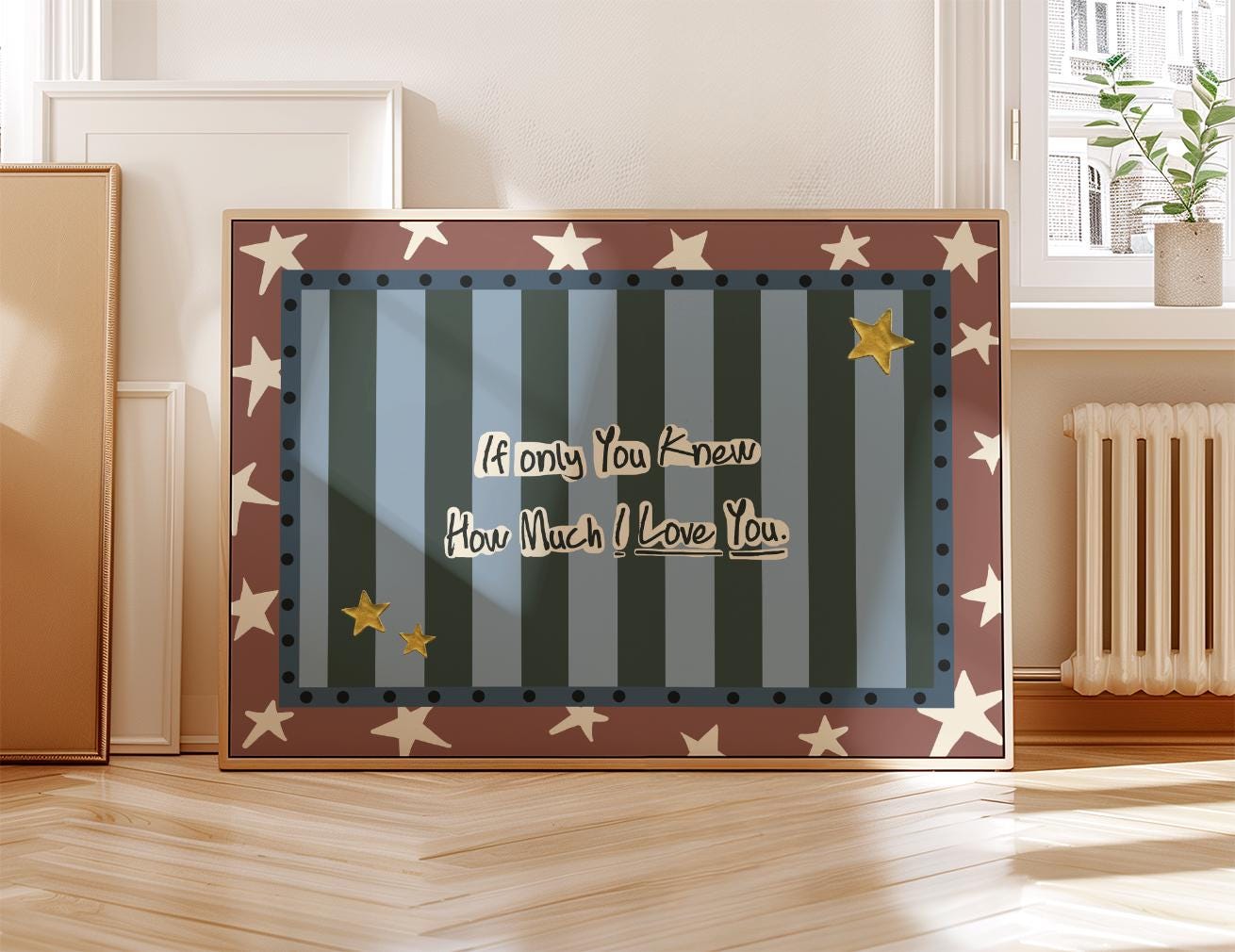 A collage style nursery print featuring the words 'If Only You Knew How Much I Love You'. Featuring a stars and stripes design.