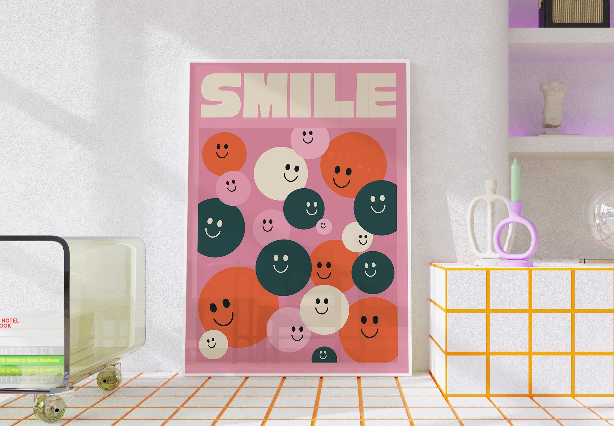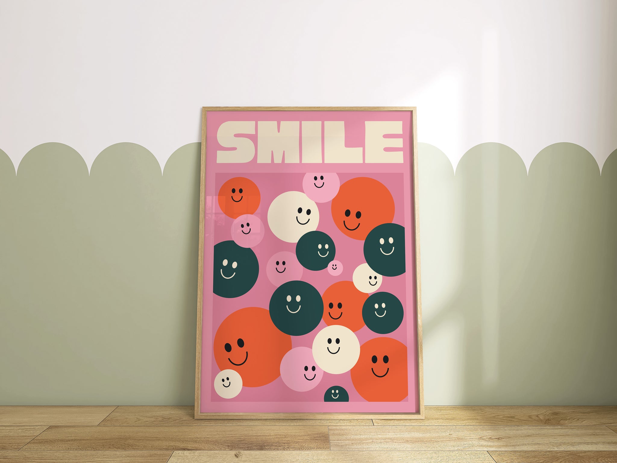 Brighten up your child's nursery or bedroom with this illustrated Smile print featuring bouncy smiley faces.